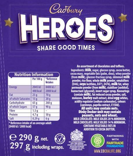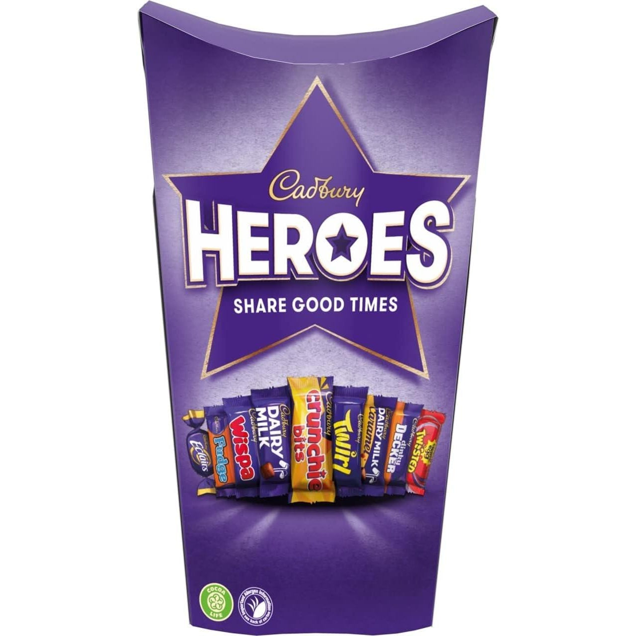 Cadbury Heroes are a mix of miniature chocolate bars, containing all your favourite Cadbury classics in one box. Heroes fans love to rummage in the box to find their favourites, including Dairy Milk, Caramel, Eclairs, Fudge, Creme Egg Twisted, Twirl and Wisp
